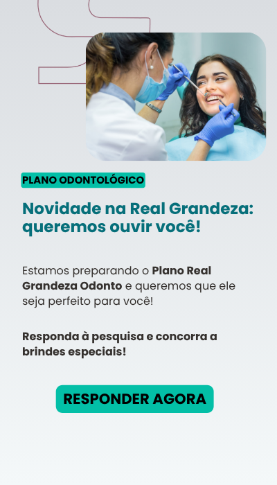 A Real Grandeza está desenvolvendo um novo benefício pensado para você e sua família: o Plano Real Grandeza Odonto. E a sua opinião é essencial para construir uma cobertura que realmente atenda às suas necessidades