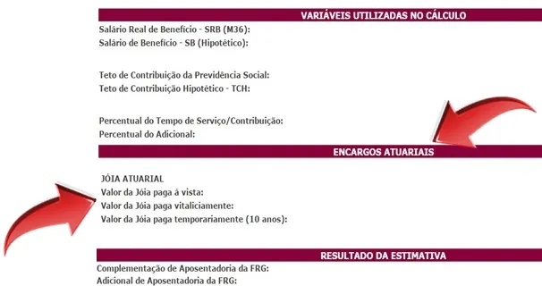 Os benefícios são reajustados nas mesmas épocas e de acordo com os índices utilizados pela Previdência Social, denominando-se Valor Base de Pagamento. Por ocasião da concessão de benefício pela FRG, o valor do benefício inicial é convertido em quantidades de unidades de benefício - UB, denominando-se Valor Mínimo de Pagamento. No mês de reajuste, esse valor é multiplicado pela cotação da UB do mês.Para efeito do pagamento, prevalecerá o maior valor apurado entre o Valor Base de Pagamento e o Valor Mínimo de Pagamento. |