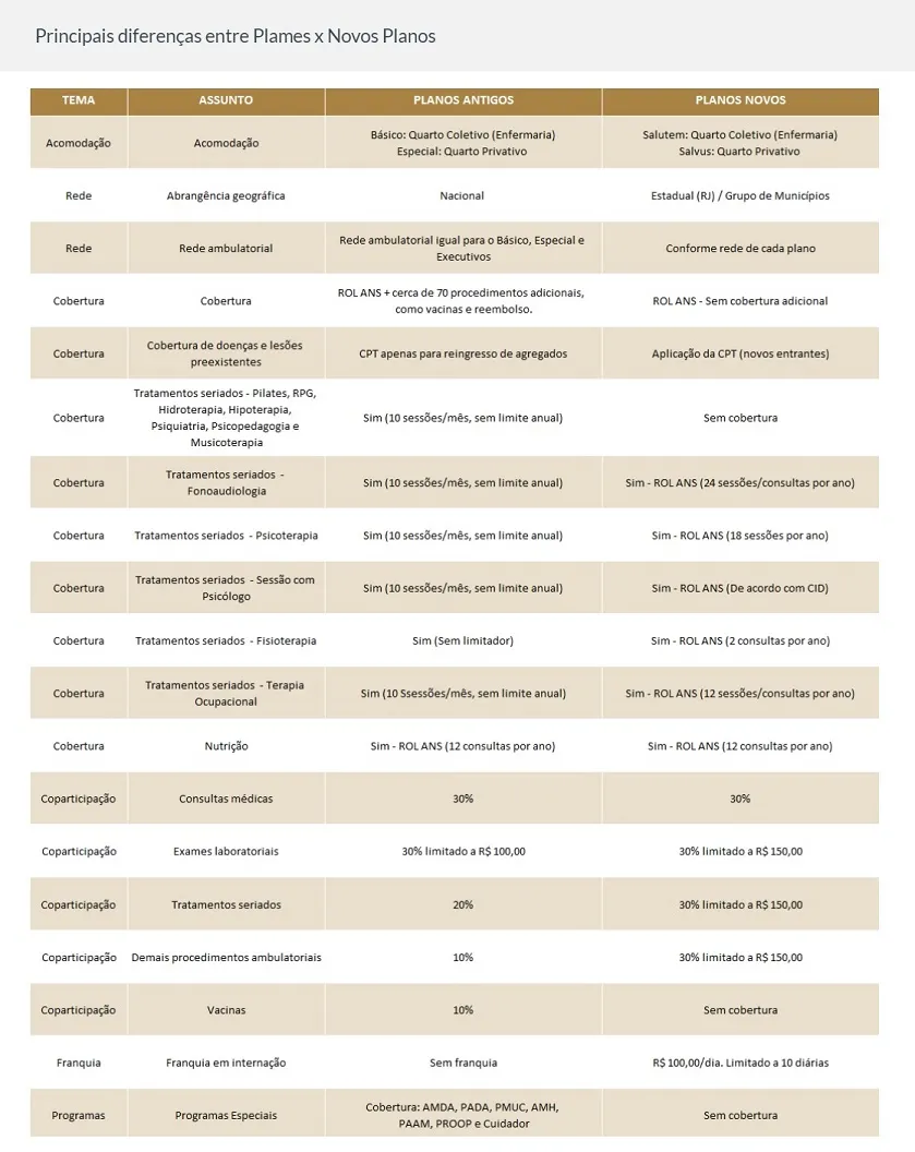 Veja, no quadro abaixo, as principais diferenças entre as modalidades Básico e Especial do Plames e as alternativas Salvus e Salutem que estão sendo oferecidas.